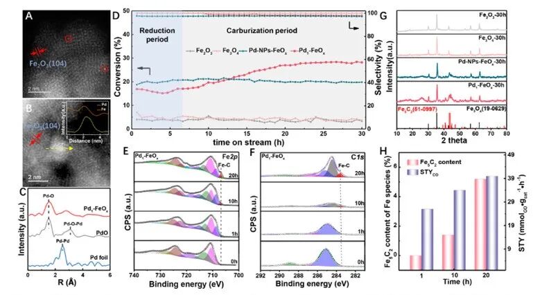 x表面在长期反应中的动态渗碳,这是普通Fe基催化剂无法实现的。Pd SAs的双重作用导致出色的r