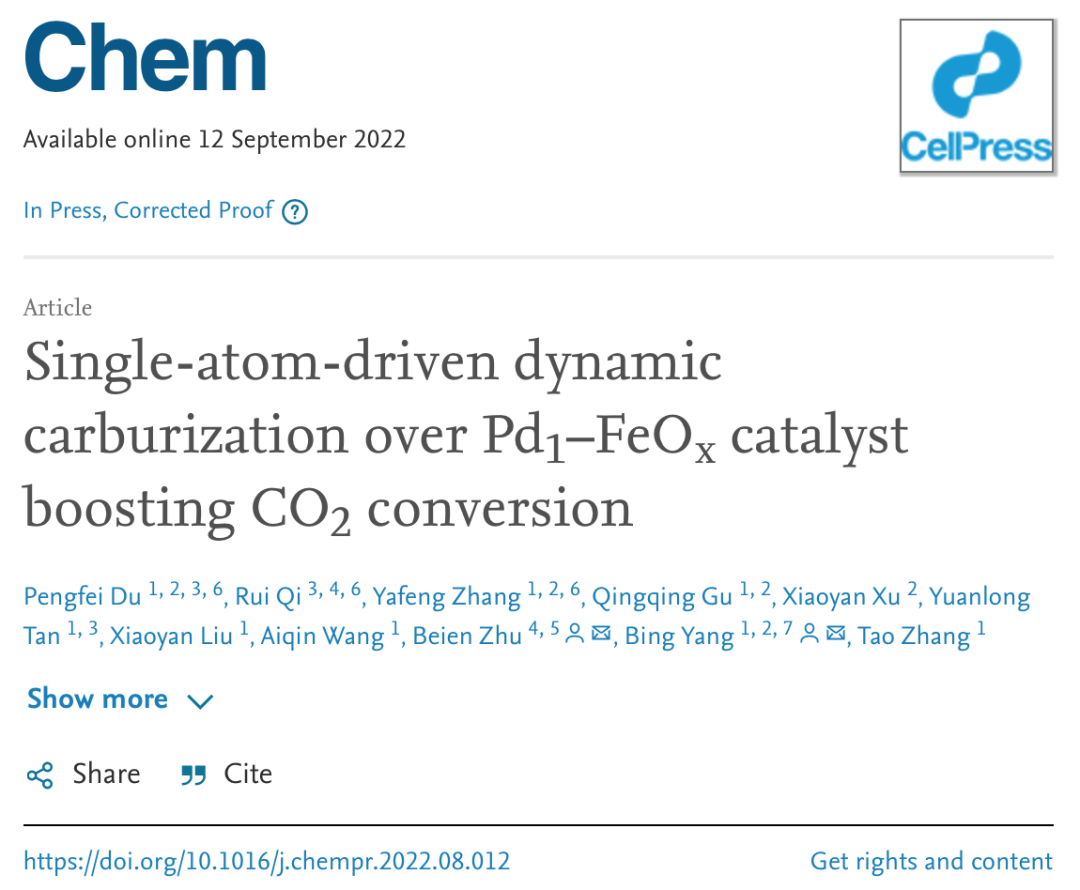 2相,被证明是由SAs独特地促进的,因此,这使得SACs的催化性能优于NP催化剂。这项工作提高了我们对SACs的理解,并为反应环境下SACs的合理设计提供了新的见解。Du et al., Single-atom-driven dynamic carburization over Pd1–FeOxcatalyst boosting CO2conversion, Chem (2022)DOI:10.1016/j.chempr.2022.08.012https://doi.org/10.1016/j.chempr.2022.08.012催化技术交流微信群加微信群方式: