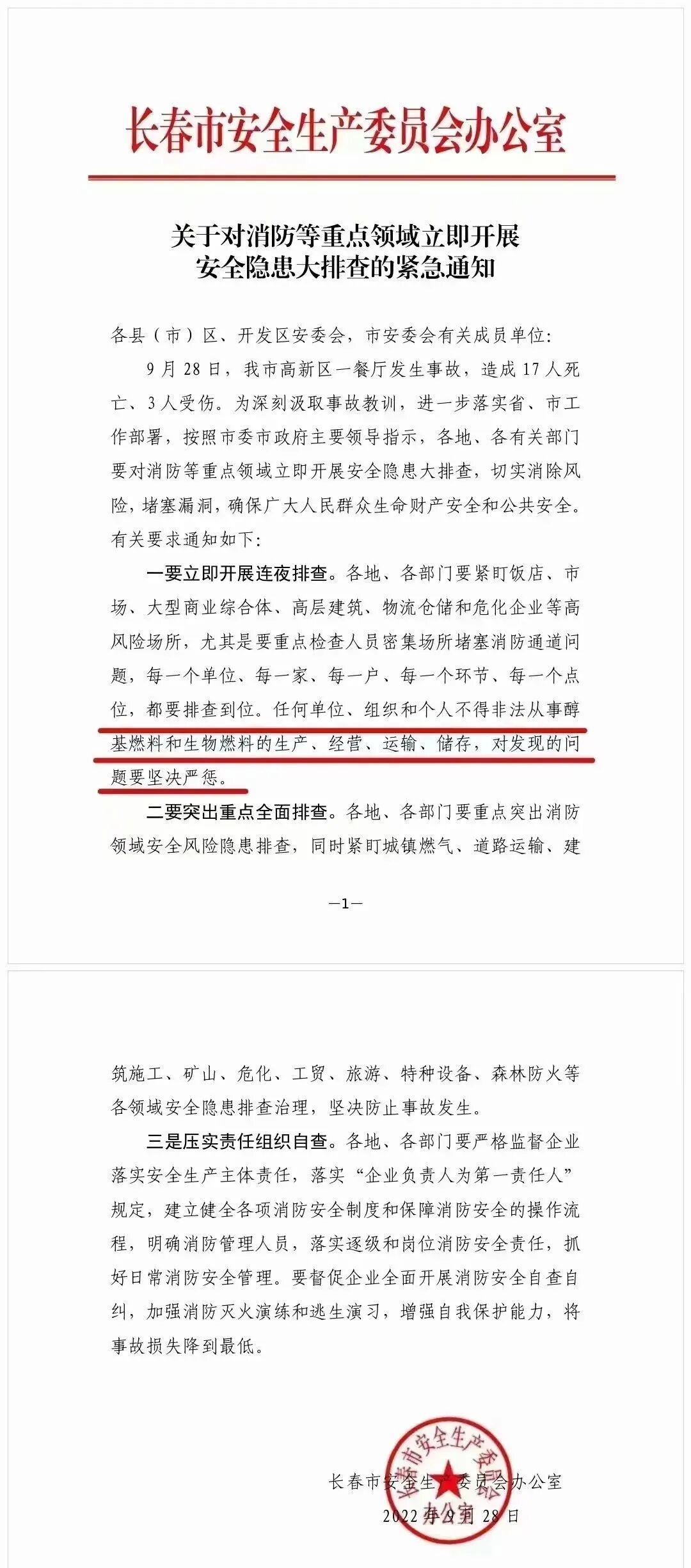 安委办连夜排查醇基燃料!官方更改长春“9.28”火灾事故原因:长春17死事故祸根→