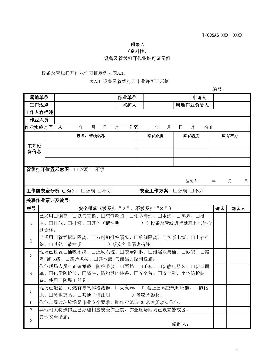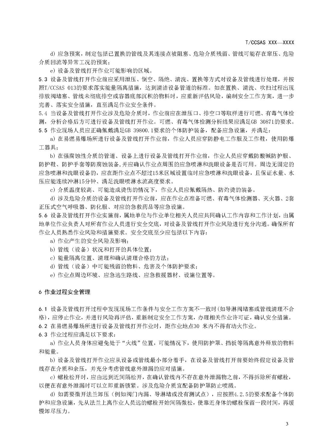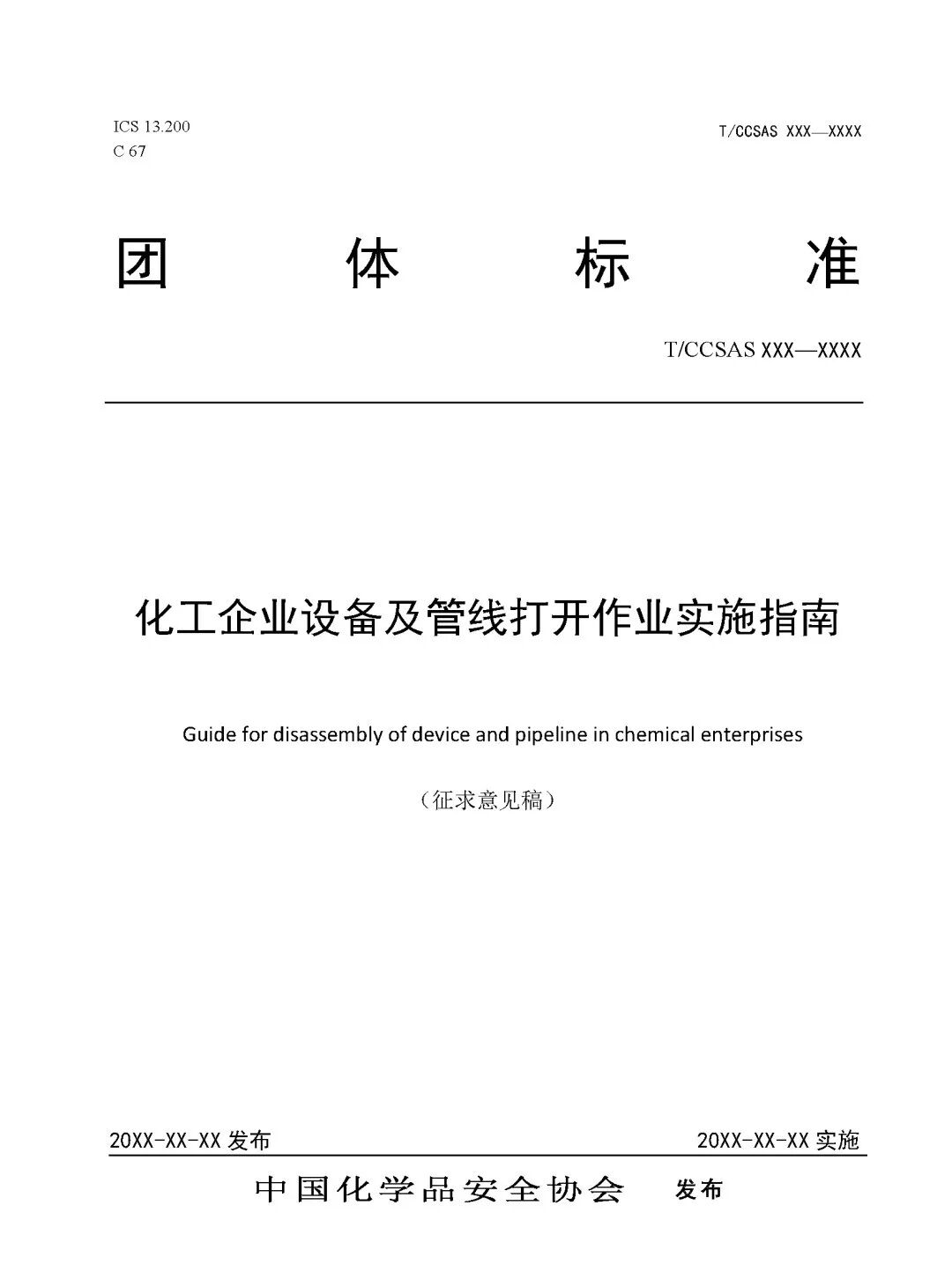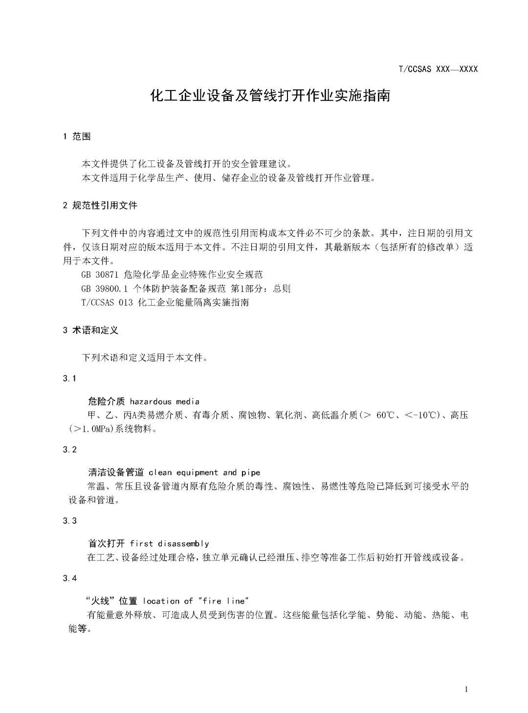 《化工企业设备及管线打开作业实施指南》(征求意见稿)