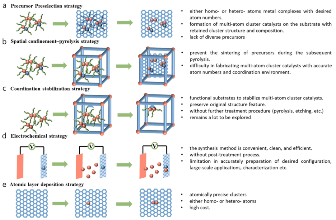 多原子簇催化剂是一种新型的多相催化剂,具有原子分散性,可用于电化学能源领域。除了单原子催化剂的简单组合,由于相邻原子之间的协同效应,它们还可以提供增强的活性。同时,催化中心的多个活性位点可以使它们对吸附物具有多种结合模式,并为催化具有不同产物的复杂反应提供了机会。