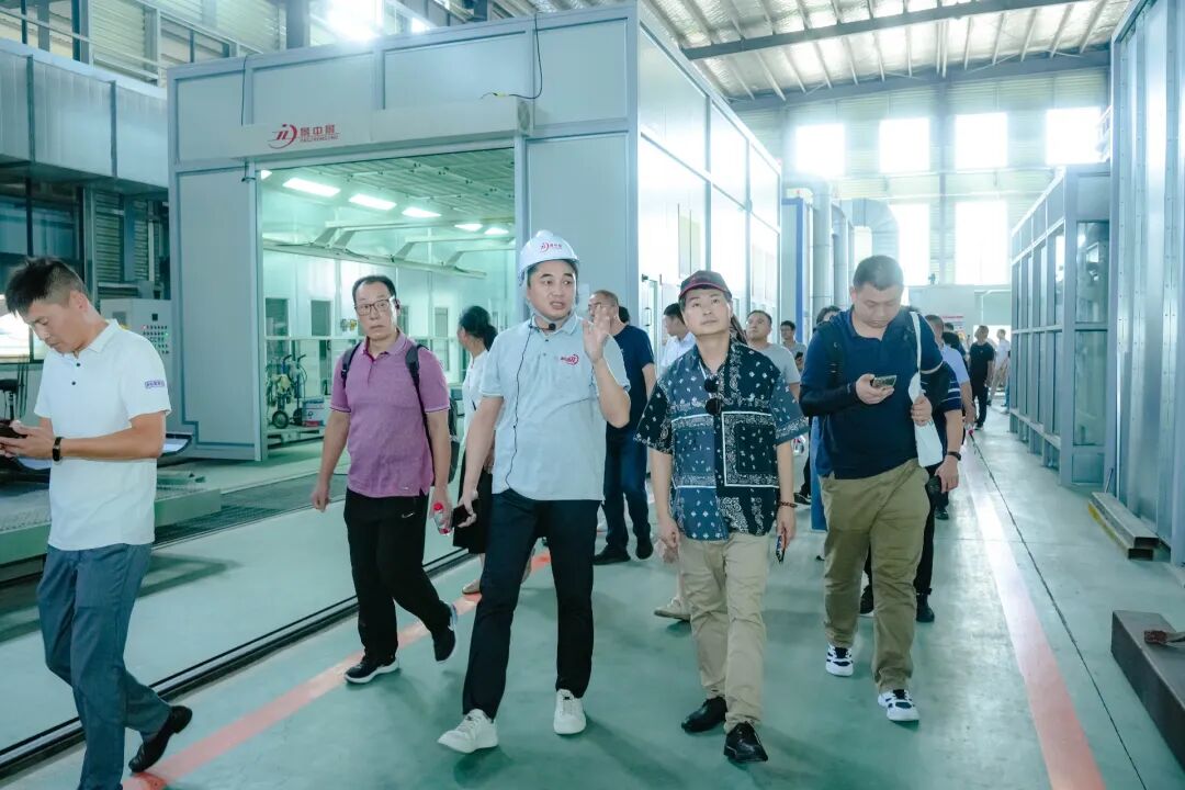 图为与会人员参观江苏景中景工业涂装设备有限公司年可加工20万件喷涂件的集中喷涂中心“绿岛”项目基地。