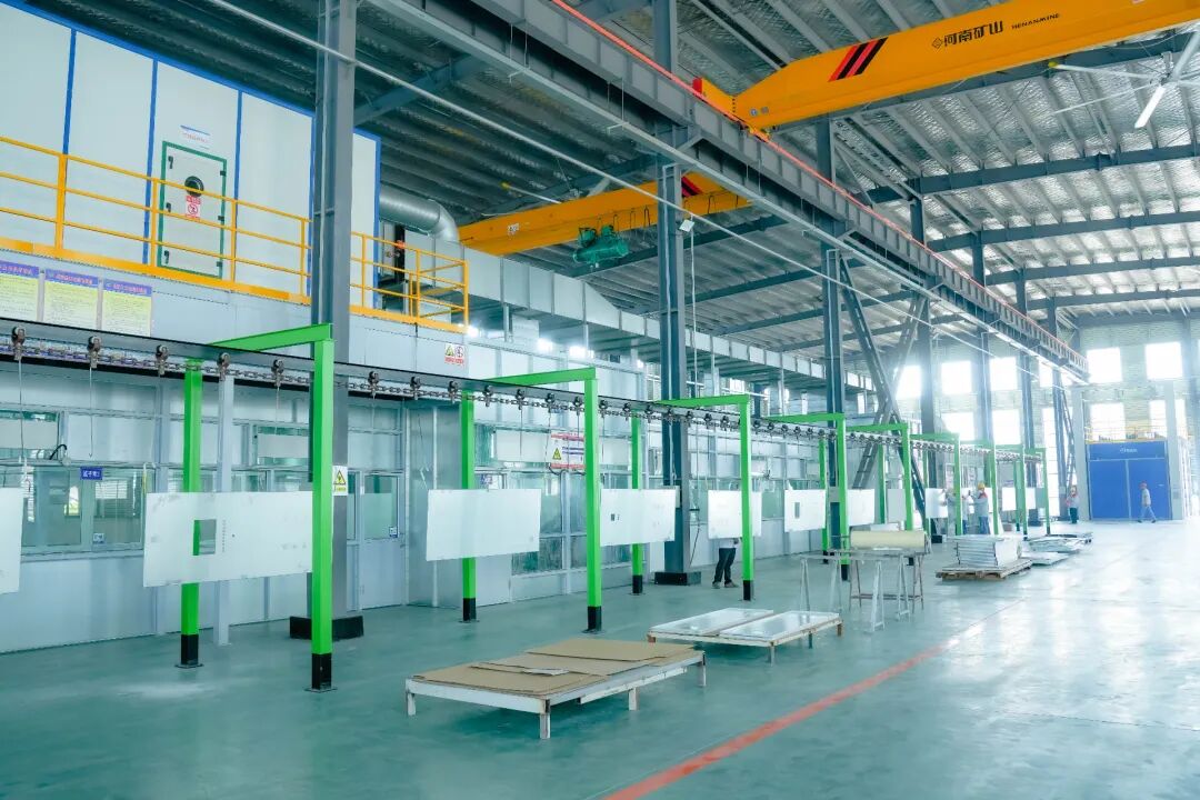 图为集中喷涂中心“绿岛”项目中自动悬挂输送装置正有序运行。