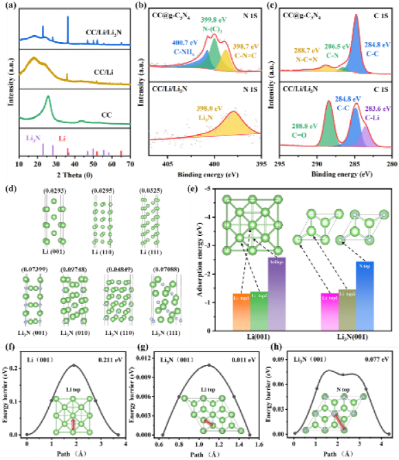 图2. CC/Li/Li 3 N的物性表征分析及密度泛函理论计算(DFT)