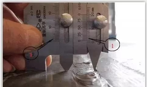测量平面焊缝高度: 首先把咬边尺对准零,并紧固螺丝,然后滑动高度尺与焊点接触,高度尺的所指示值,即为焊缝高度