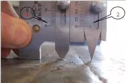 测量焊缝咬边深度: 首先把高度尺对准零位,并紧固螺丝,然后使用咬边尺测量咬边深度,看咬边尺指示值,即为咬边深度。