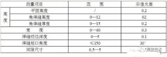 测量角焊缝: 在45°时的焊点为角焊缝厚度。首先把主体的工作面与焊件靠紧,并滑动高度尺与焊点接触,高度尺所指示值即为焊缝厚度。