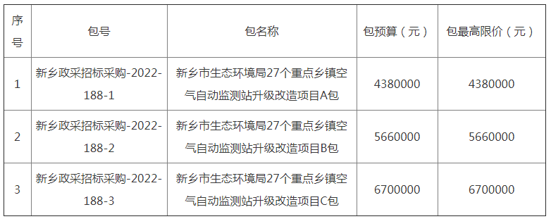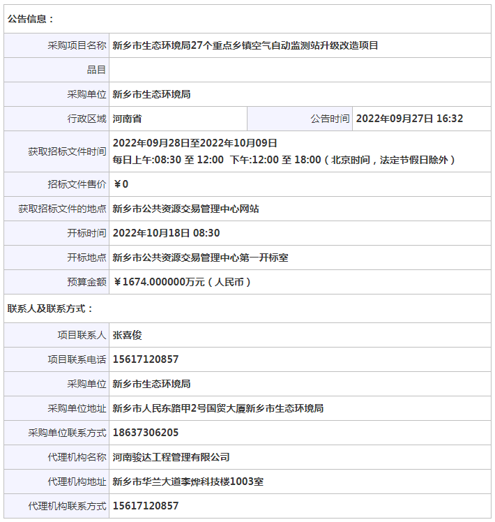 (1)采购内容:新乡市27个重点乡镇空气自动监测站升级改造,详见招标文件第五部分“招标项目采购需求”;