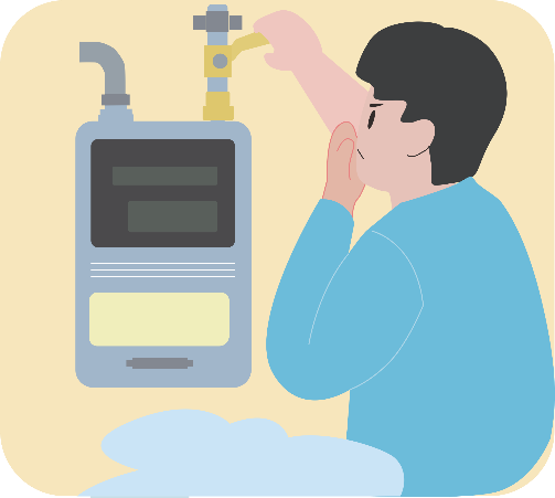 第二步: 立即关闭燃气总阀,切断气源,严禁用明火检查漏气。