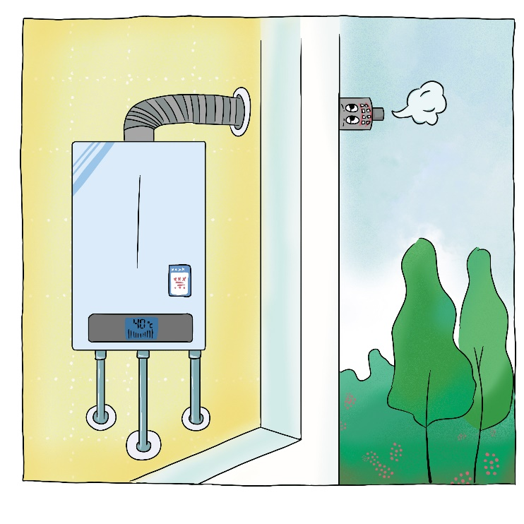 平时在热水器使用中应经常检查烟道是否有脱落、开裂等异常,避免烟气直排室内。热水器烟管必须为独立烟道并伸出室外,若安装有热水器的阳台为封闭式,也必须安装有单独通往户外的烟管。