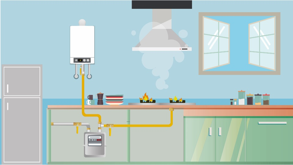 室内燃气管道和燃气器具(燃气表、阀门、炉具、热水器、采暖炉)应明装在通风良好的厨房内,燃气管道切勿埋入墙内或地下,严禁穿越卧室、卫生间、客厅和地下室,或将装有燃气设施的场所改为卧室、浴室等用途。厨房要有门和其他房间隔开,开放式厨房或暗厨房不得开通燃气。