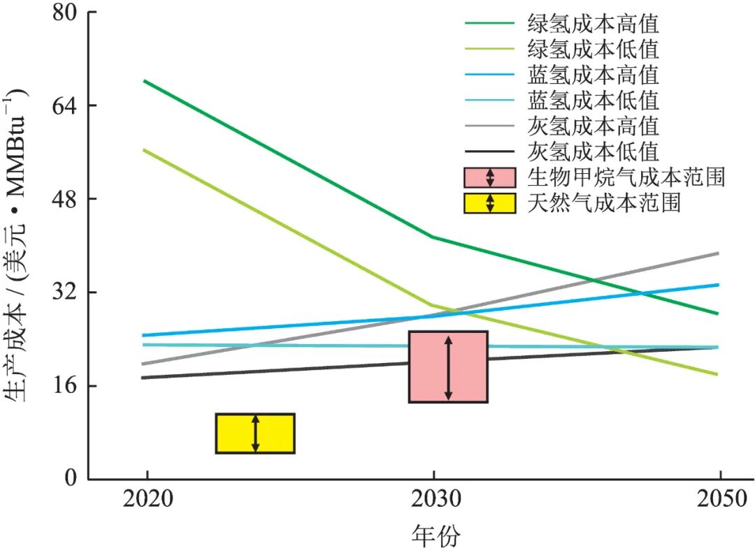 天然气兼具清洁、低碳和灵活三重特征,是众多国家应对极端气候、保障能源应急供应、降低碳排放的首选,可以在全球能源绿色低碳转型过程中发挥重要作用 [1-5] 。随着“碳中和”逐渐成为全球共识,除了传统的天然气之外,更多类型的低碳气体开始受到关注。国际天然气联盟( International Gas Union , IGU )已经将“ Gas ” 重新定义为“ Gases ” ,“ Gases ” 的定义除了传统天然气以外,也包括氢气、生物气(沼气、生物甲烷)、合成甲烷气(煤制气、 CO 2 制甲烷气),甚至氨气等不同类型的可再生燃气能源 [6] 。欧盟已将天然气有条件地列入绿色清单 [7] ,强调要增加生物甲烷气和氢气的使用,并计划在 2030 年实现生物气年产量 350 × 10 8 m 3 、可再生氢年产量 1 000 × 10 4 t [8] ;日本、澳大利亚等国家也开始重视氨气的发展,将其视为零碳燃料和氢潜在的载体。从设施建设方面来看,传统天然气和可再生燃气可以共用部分基础设施,具备融合发展的基础条件,在全球能源发展的新形势下,推动传统天然气和可再生燃气融合发展,降低天然气碳排放量,将有助于我国天然气安全和“双碳”目标的实现。
