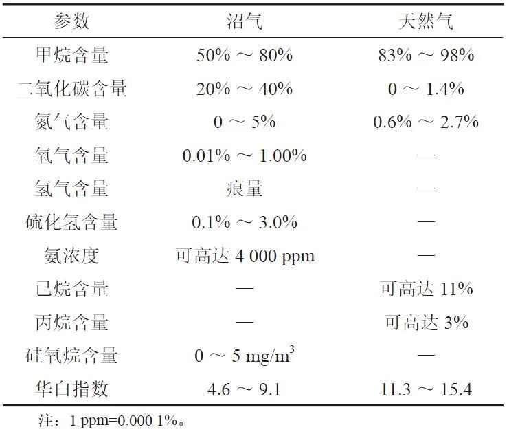 沼气通过生物质厌氧降解方式生成,主要由甲烷和二氧化碳组成,其成分与天然气的对比如表 1 所示。生物甲烷气是沼气去除二氧化碳和其他杂质后的气体,性质和天然气接近,可以直接注入天然气管网, 这为生物甲烷气的大规模应用提供了设施基础。据欧洲沼气协会( European Biogas Association , EBA ) 数据显示,截至 2021 年底,欧洲生物甲烷气工厂达 1 023 家,其中 87% 已连入欧洲各国燃气网。