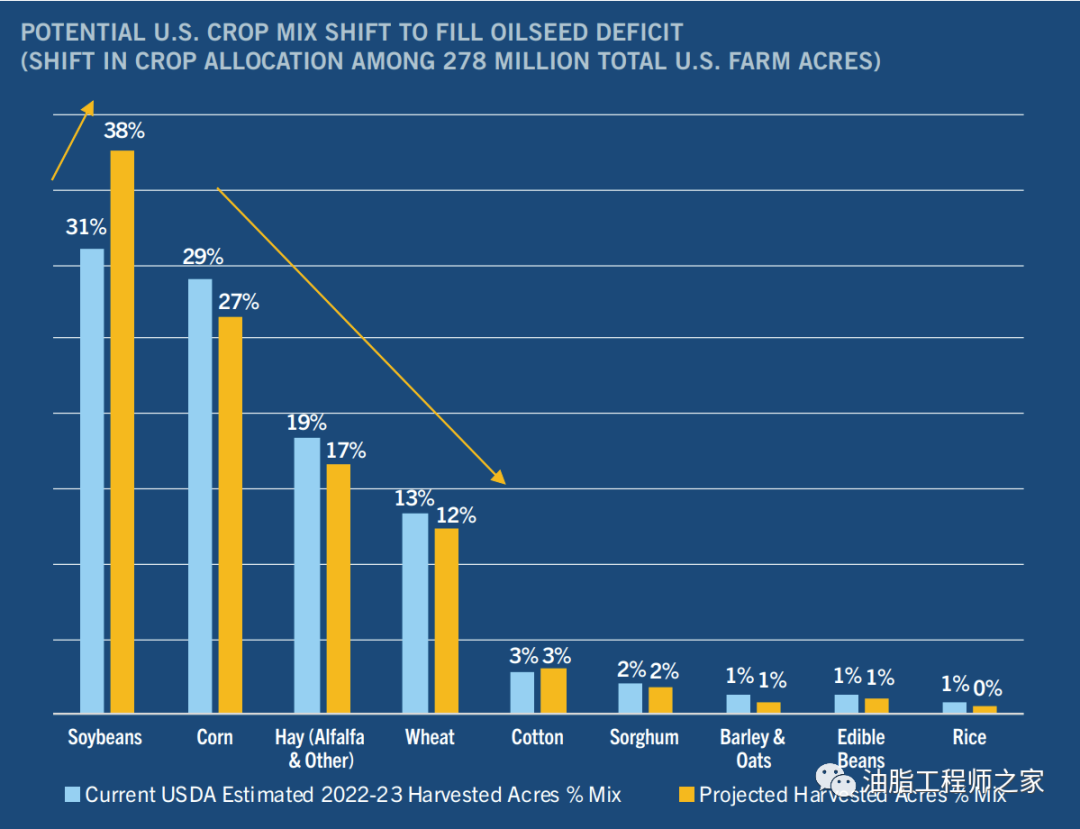 大规模种植玉米和大豆的替代方案包括大规模种植油菜籽和葵花籽等其他油料作物,进口其他植物油,或使用牛油等其他原料生产可再生柴油。
