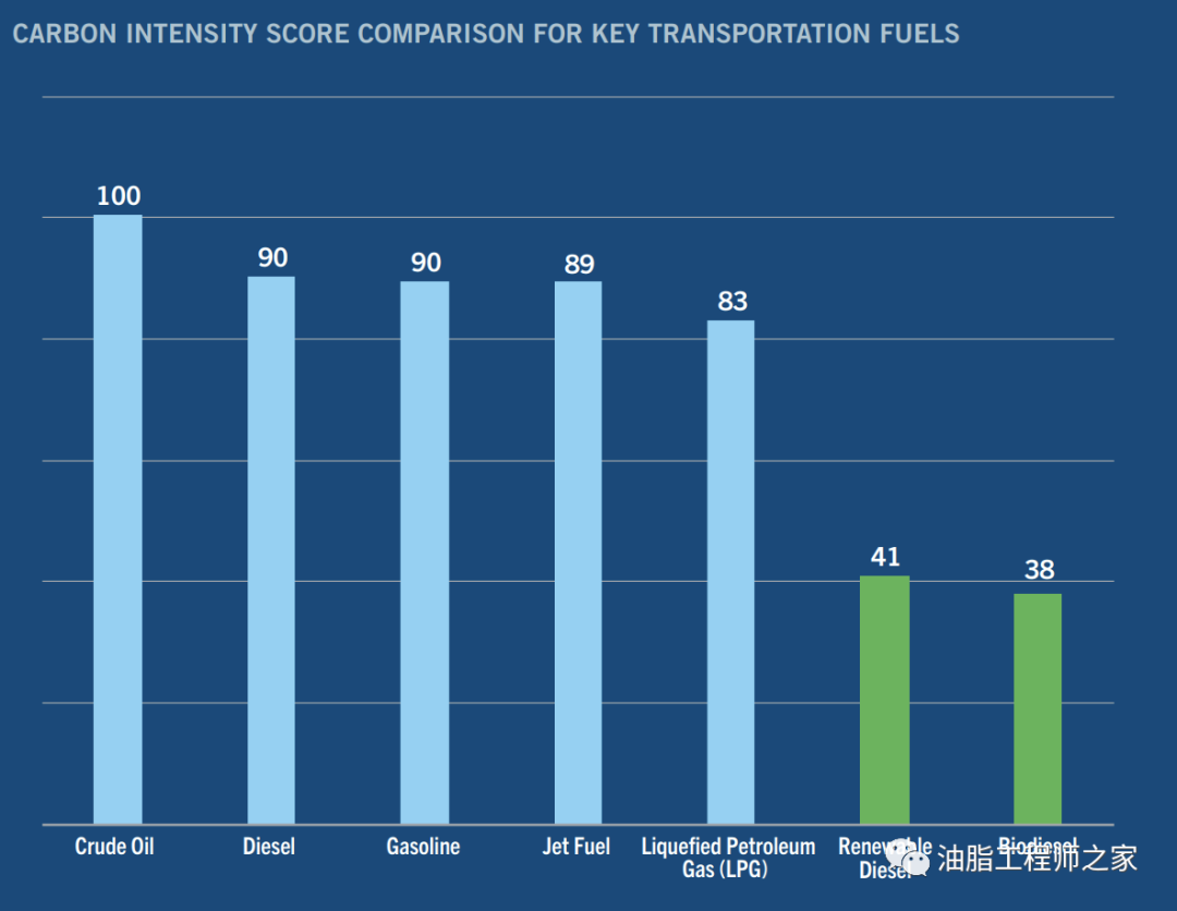 生物柴油和可再生柴油的碳密集度比传统石油柴油低50%至55%。