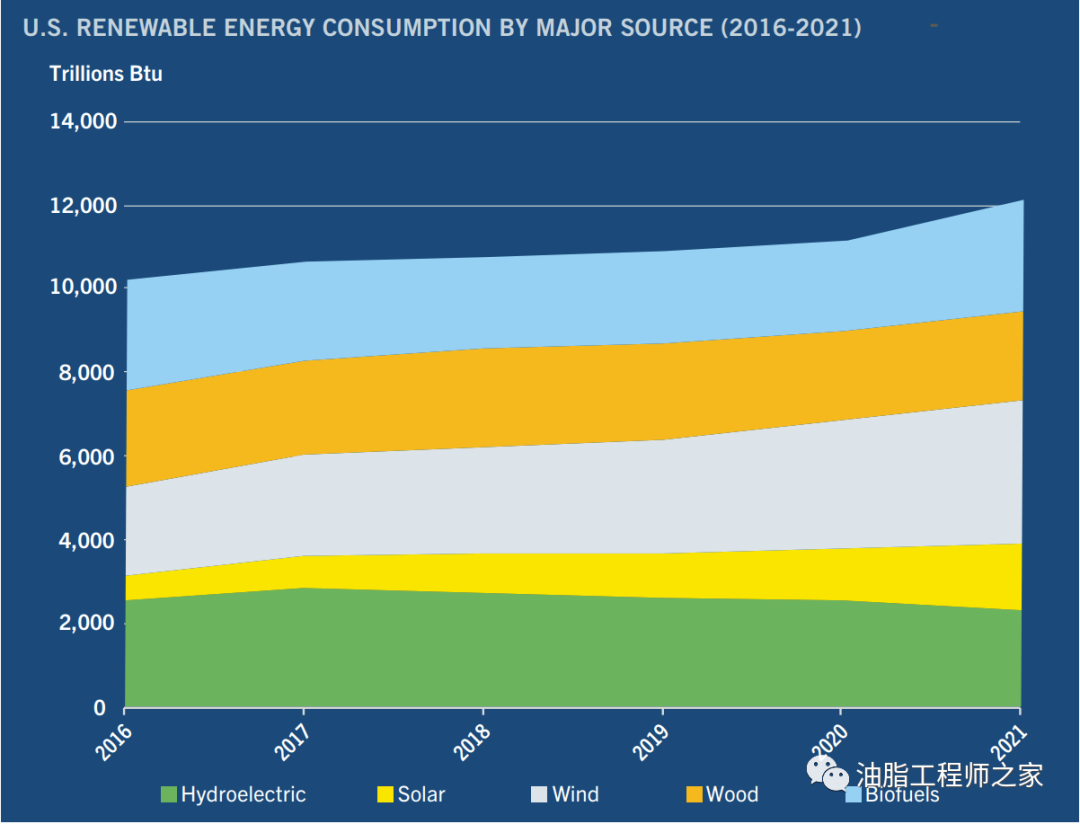 在过去15年中,生物燃料产量每年增长近8%,这是由税收减免和有针对性的政府项目推动的,包括联邦可再生燃料标准(RFS)计划和加州低碳燃料标准(LCFS)。