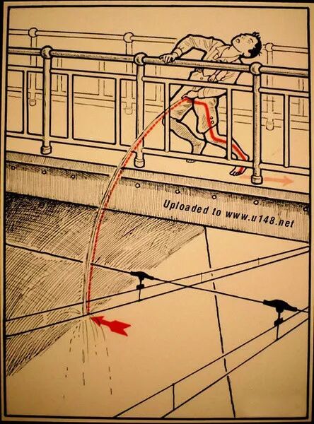 1.在天桥上尿尿的不羁青年要小心了!尿弧接触到电线 ,于是 ,电沿着水辐射出电力 ,NO ZUO NO DIE 。