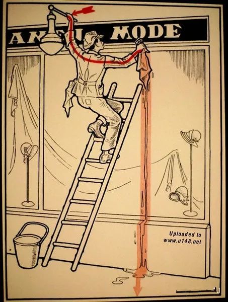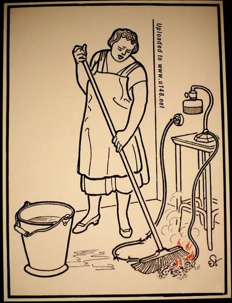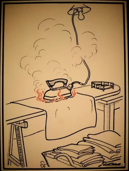 27.危险的主妇系列,因为电线的长年使用导致电路老化 破损,而她的拖把上沾了水,就容易引起触电或着火。