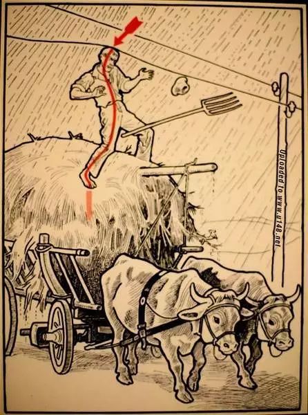 9.雨天碰到了电线 ,而下面的干草都被雨水淋湿 ,变成了导体 ,导致触电 。这个故事告诉我们。。有人叫你捡肥皂是好事。