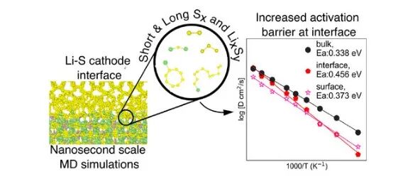 2 ) 研究人员使用主动学习方法发展了一个精确的矩张量势来研究S 8 |β-Li 3 PS 4 界面。大界面模型(> 1000s原子)的分子动力学(MD)模拟显示,最稳定的Li 3 PS 4 (100)表面倾向于与S 8 形成界面,具有2D通道和较低的Li扩散激活势垒。