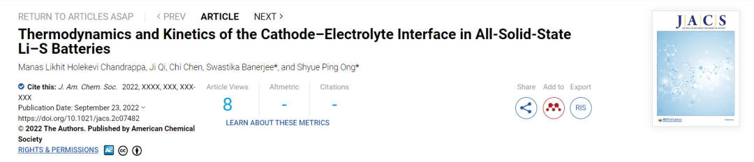 Thermodynamics and Kinetics of the Cathode−Electrolyte Interface in All-Solid-State Li−S Batteries Manas Likhit Holekevi Chandrappa, J. Am. Chem. Soc., 2022