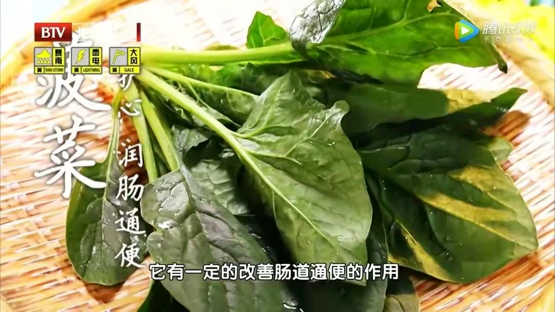 菠菜含有大量 膳食纤维 ,具有促进肠道蠕动的作用,利于排便,帮助消化。