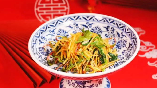 1.菠菜洗净后焯水,梨去皮切丝备用。