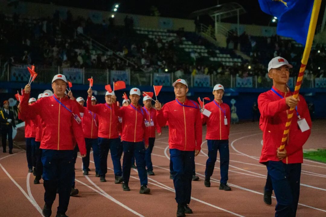 入场仪式上,中国消防代表队第10个入场,向观众挥手致意,观众席报以热烈的掌声。