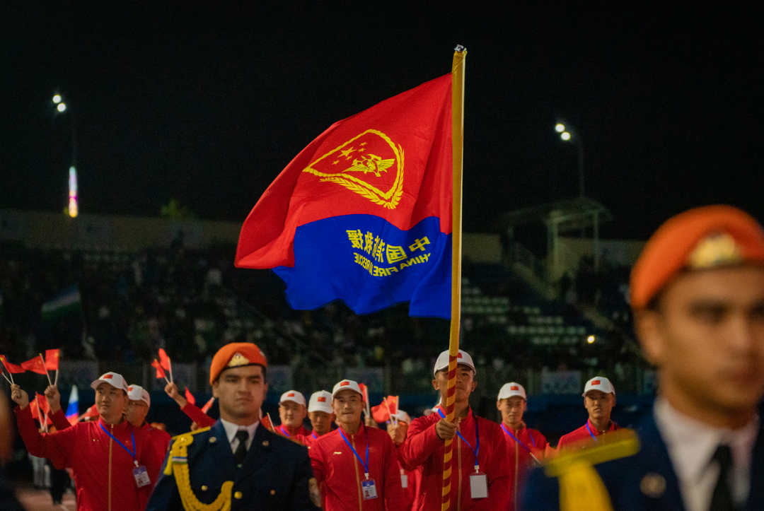 北京时间10月1日21时30分,第十七届世界消防救援锦标赛在乌兹别克斯坦撒马尔罕市afrosib体育场开幕。乌兹别克斯坦紧急情况部部长、撒马尔罕市市长、联合会执委会主席、总裁判长分别致辞,俄罗斯紧急情况部常务副部长、哈萨克斯坦紧急情况部部长、白俄罗斯紧急情况部部长和中国应急管理部消防救援局魏捍东副局长等在主席台就坐。