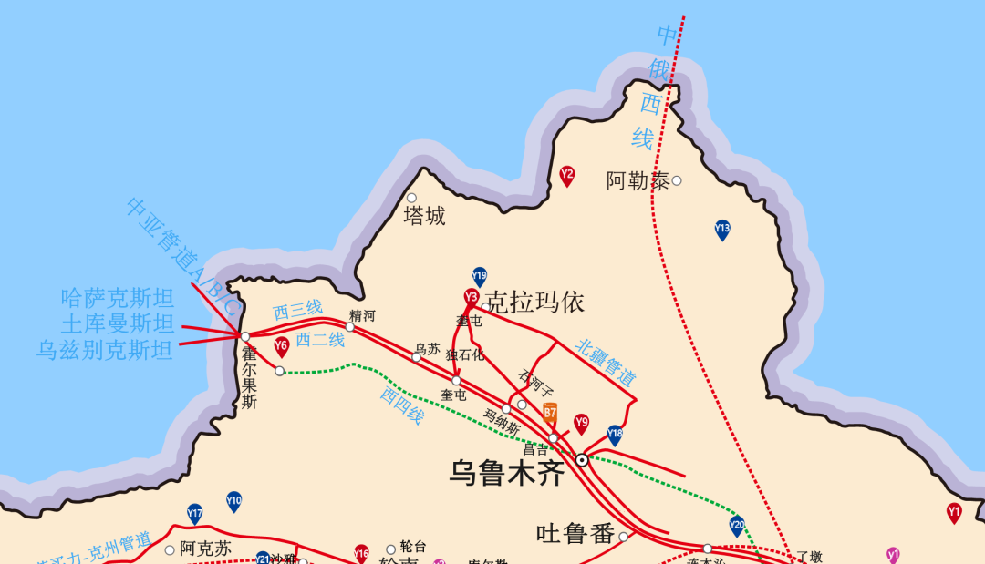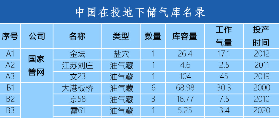 》 中国主要天然气基干管网表 :管径、压力、年输气能力