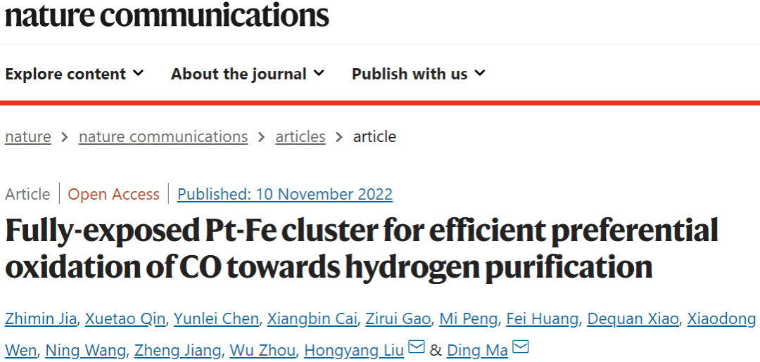 Fully-exposed Pt-Fe cluster for efficient preferential oxidation of CO towards hydrogen purification.