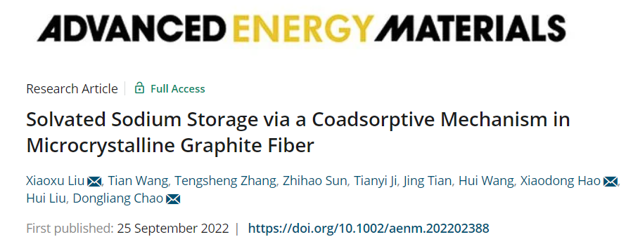 Xiaoxu Liu, et al, Solvated Sodium Storage via a Coadsorptive Mechanism in Microcrystalline Graphite Fiber, Adv. Energy Mater. 2022