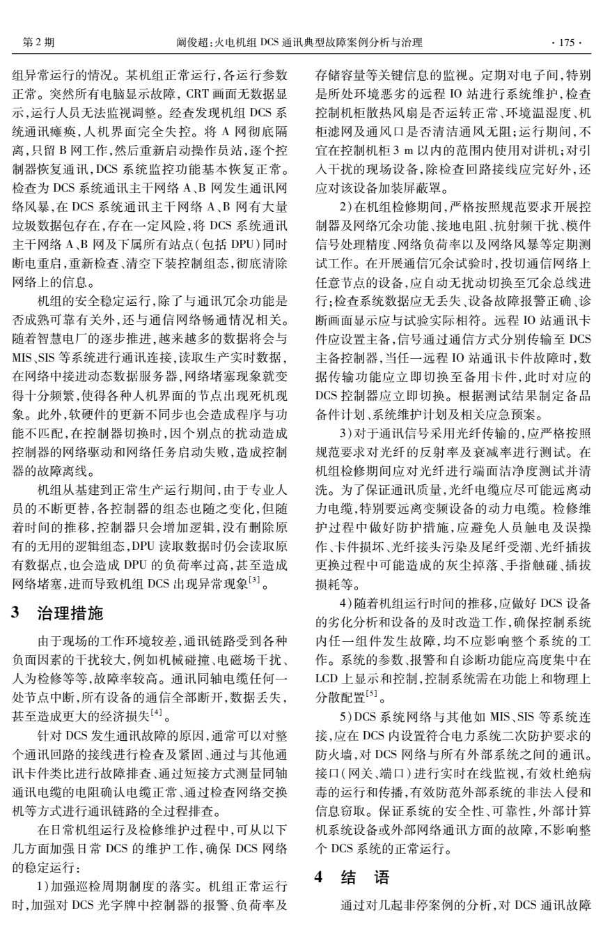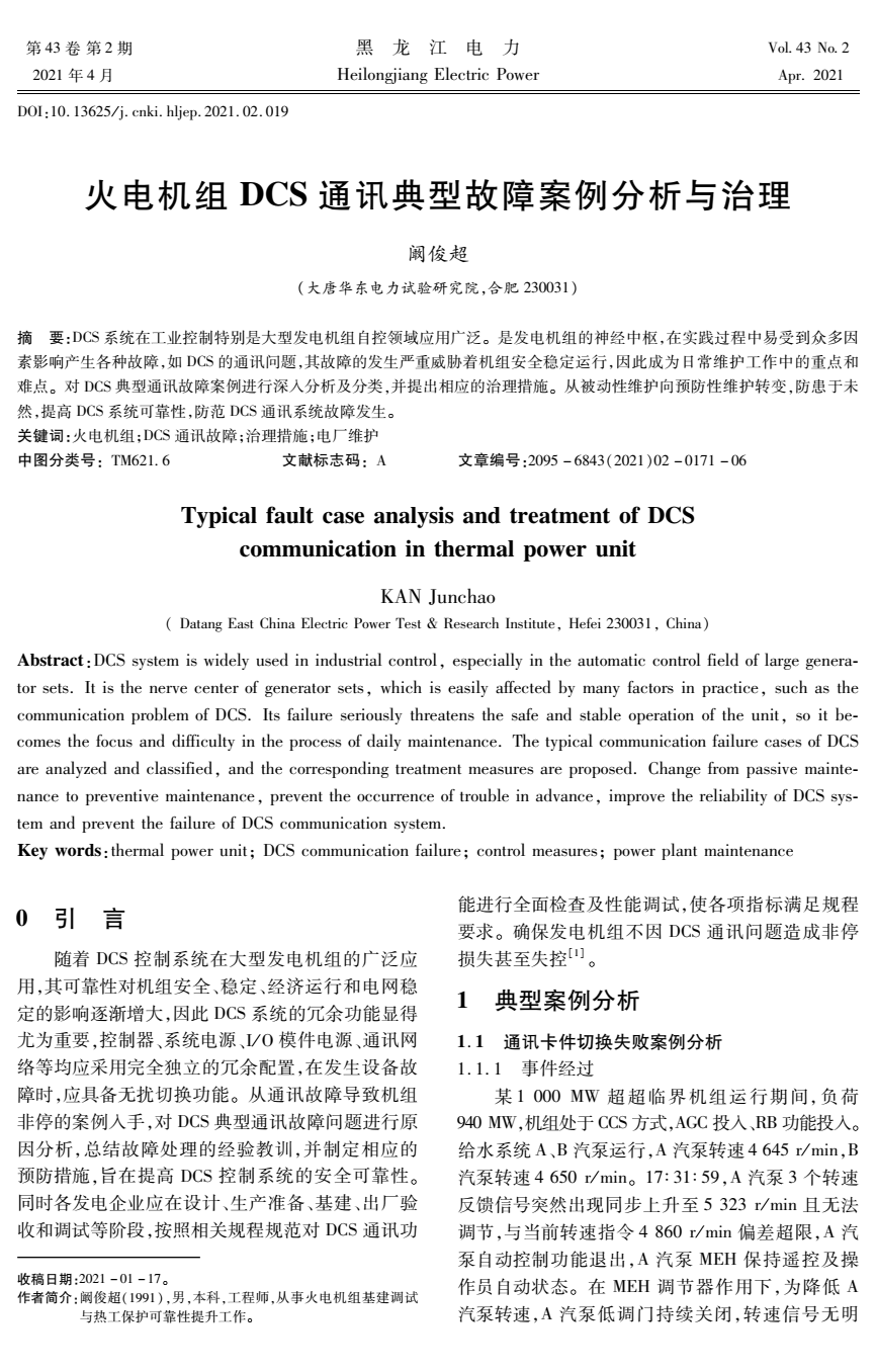 火电机组DCS通讯典型故障案例分析与治理