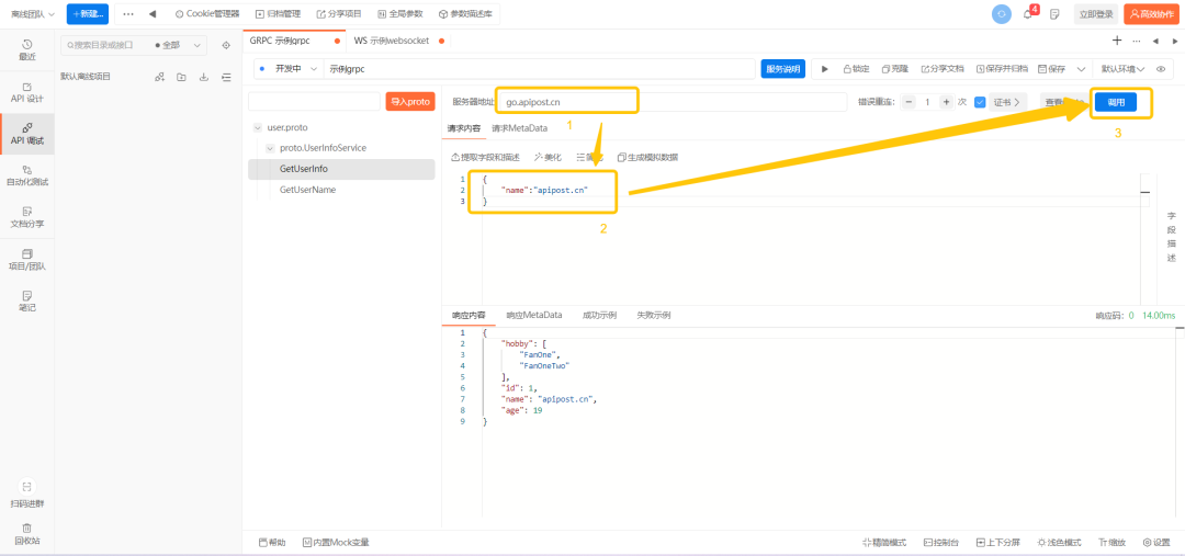 由于gRPC良好的生态、强大的性能、支持多种语言、基于http2.0的流式处理等多种优势,导致gRPC的使用频率越来越高,随之而来进行gRPC调试的需求也日益增加。选择在Apipost 7 中进行gRPC调试,只需要简单的几步即可实现: