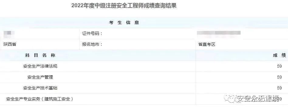 2022年考试的中级注册安全工程师考试成绩终于公布了!