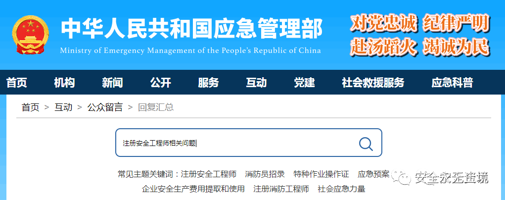 应急部最新答复: ➤ 网友关心的注册安全工程师相关问题
