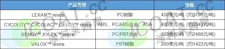 SABIC: 因原材料和能源成本的不断提升,10月5日起,SABIC将对PC树脂、ABS合金等产品进行提价, 最高上涨高达450美元/吨(约合人民币3199元/吨)。