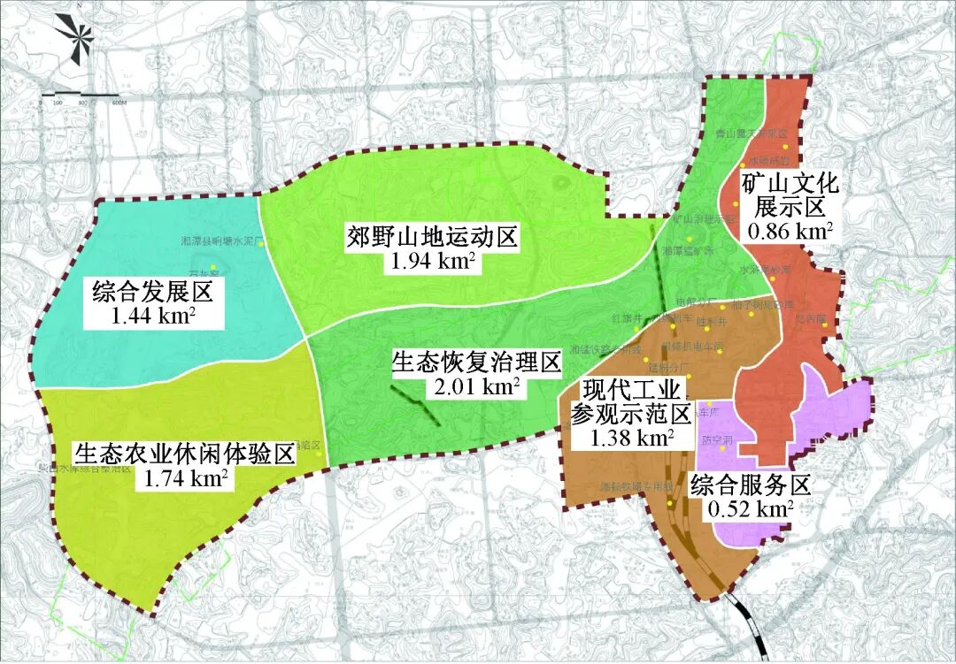 图 5 湘潭锰矿矿山公园规划功能分区 [14]