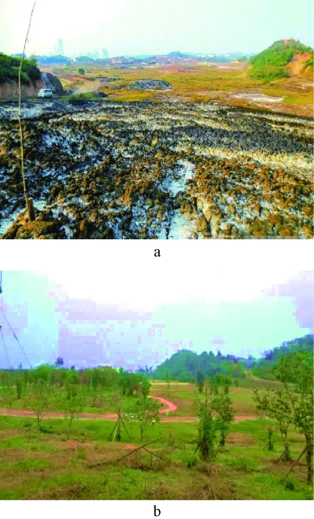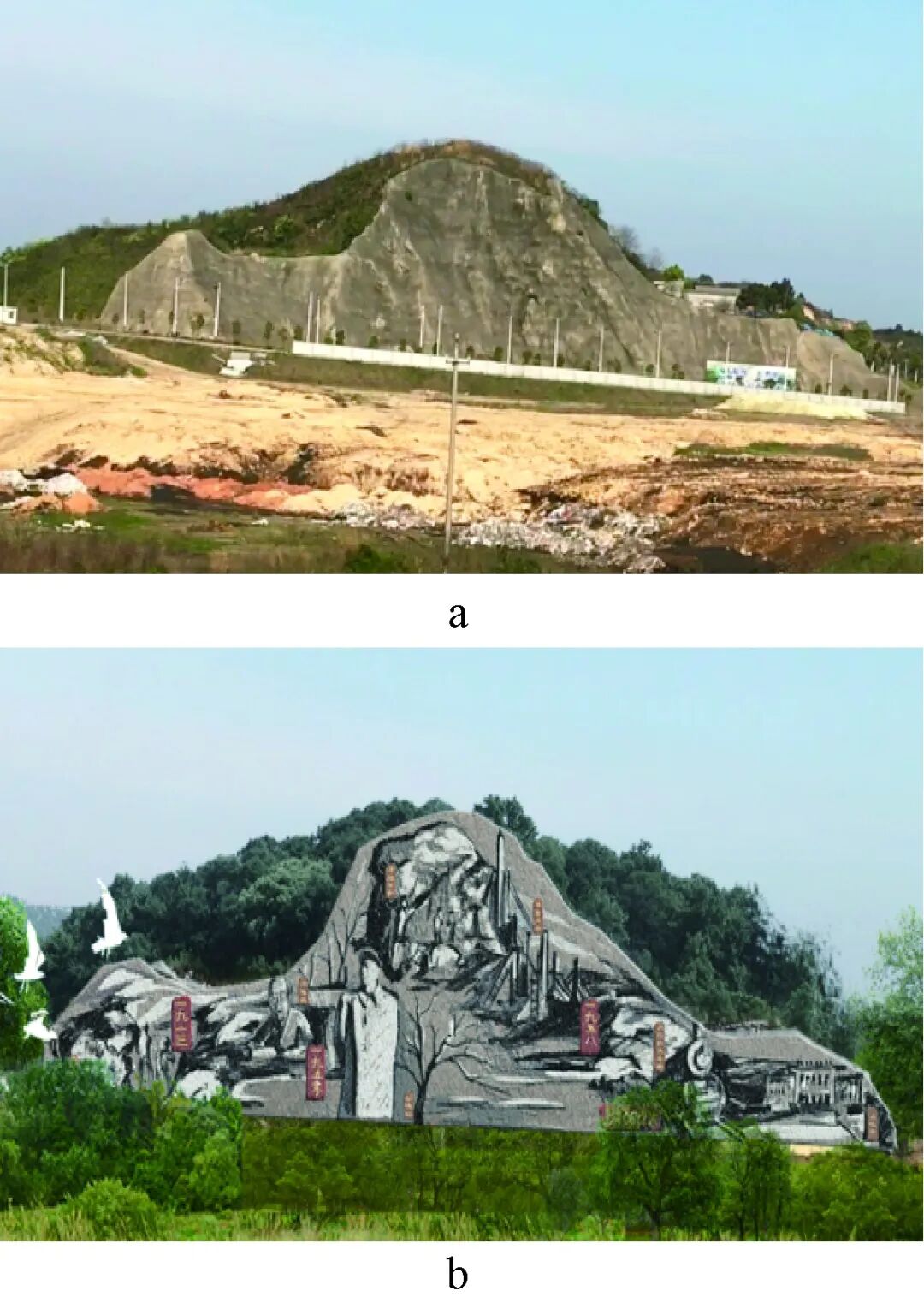 图 7 湘潭锰矿裸露山体改造设计前后