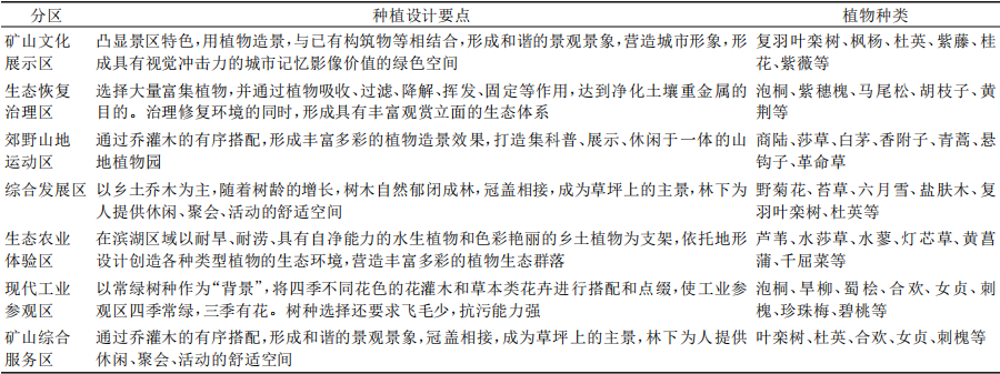 表 2 锰矿矿山公园规划种植设计与分区
