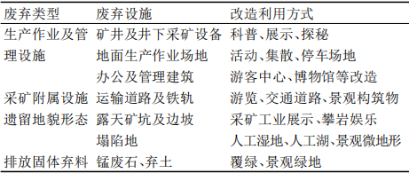 表 4 湘潭锰矿矿山设施及材料的改造利用方式