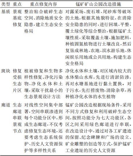 表 3 锰矿矿山公园基于“基质—斑块—廊道”方法改造措施