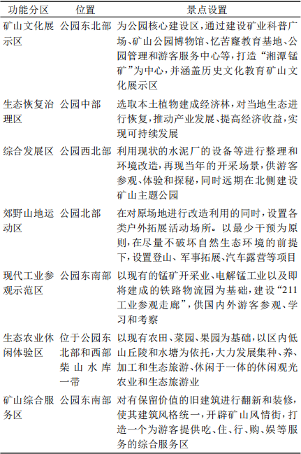 表 1 湘潭锰矿矿山公园规划功能分区