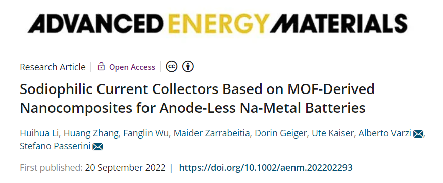 Huihua Li, et al, Sodiophilic Current Collectors Based on MOF-Derived Nanocomposites for Anode-Less Na-Metal Batteries, Adv. Energy Mater. 2022