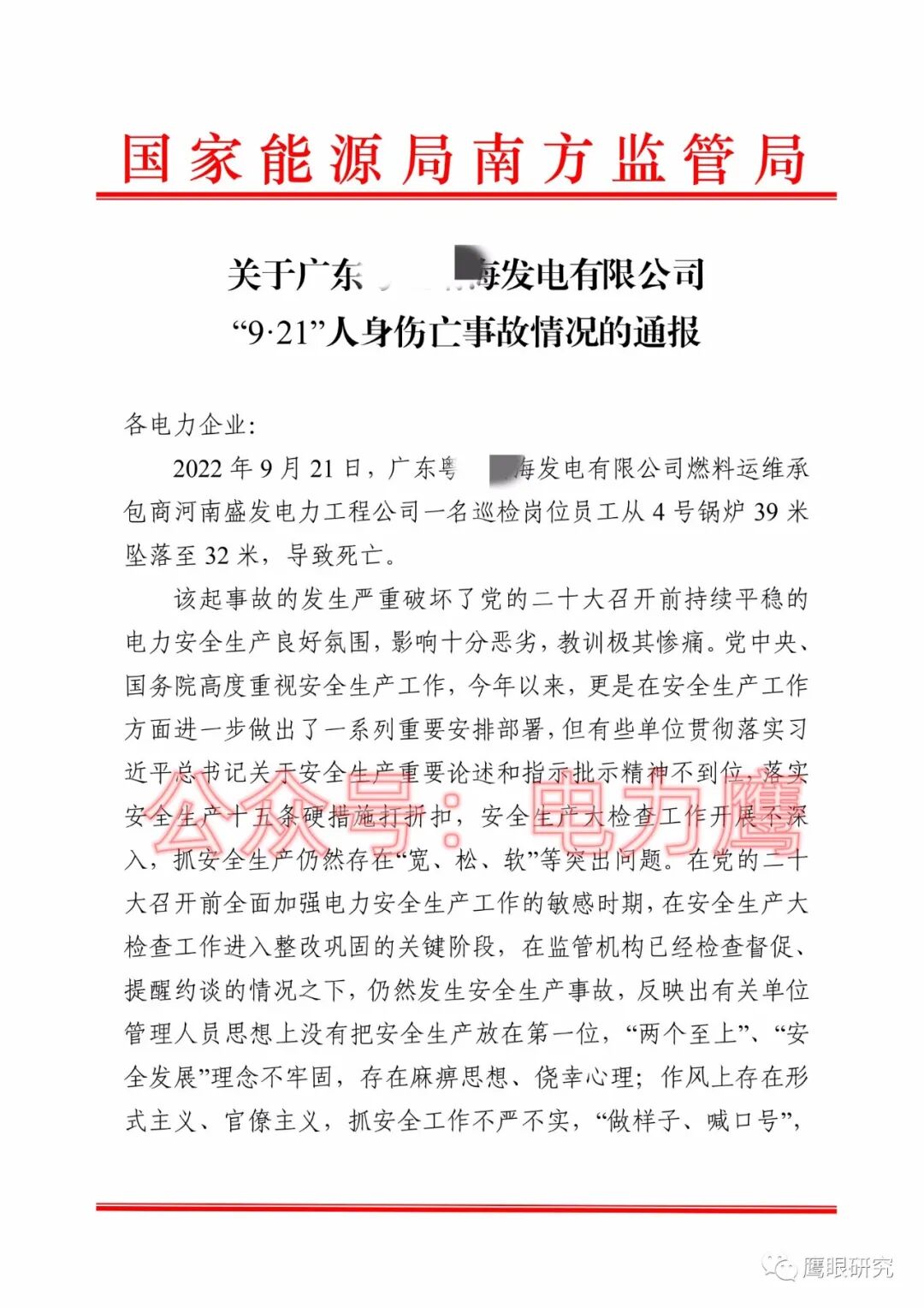 突发!关于广东某电厂“9·21”人身伤亡事故情况通报