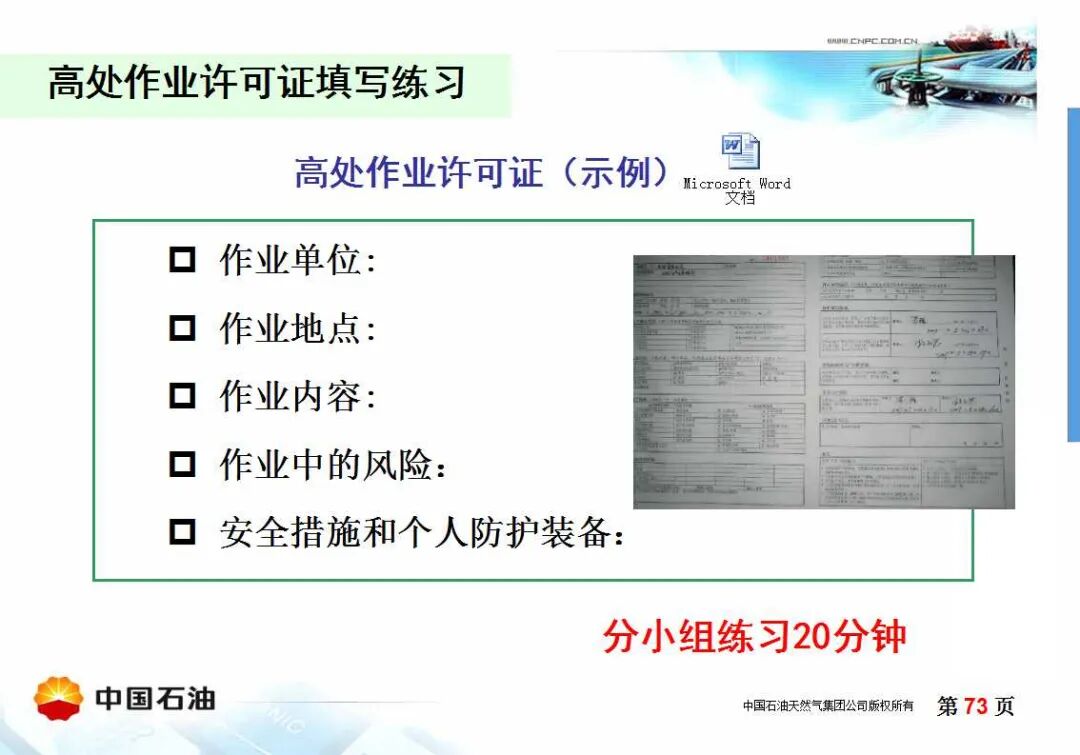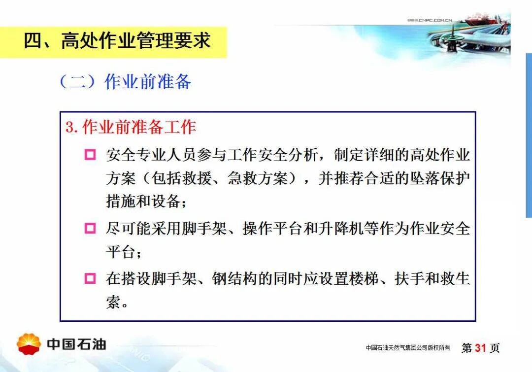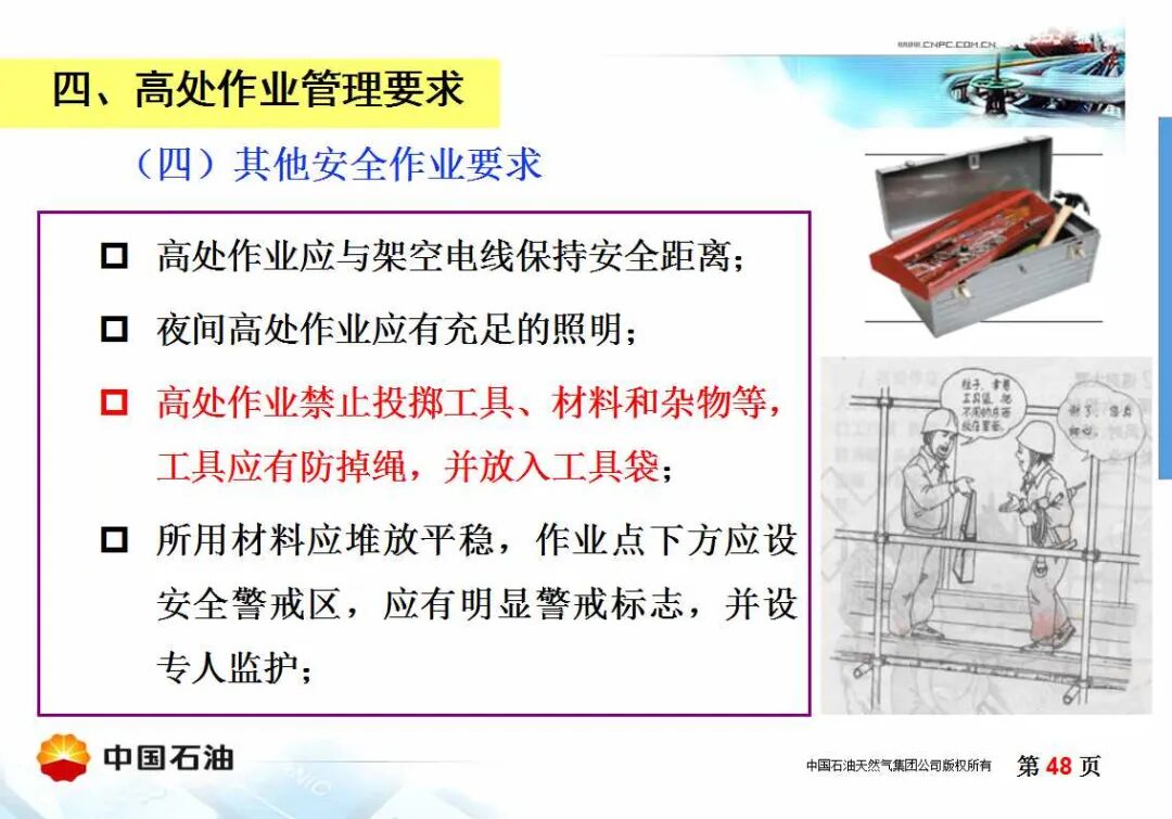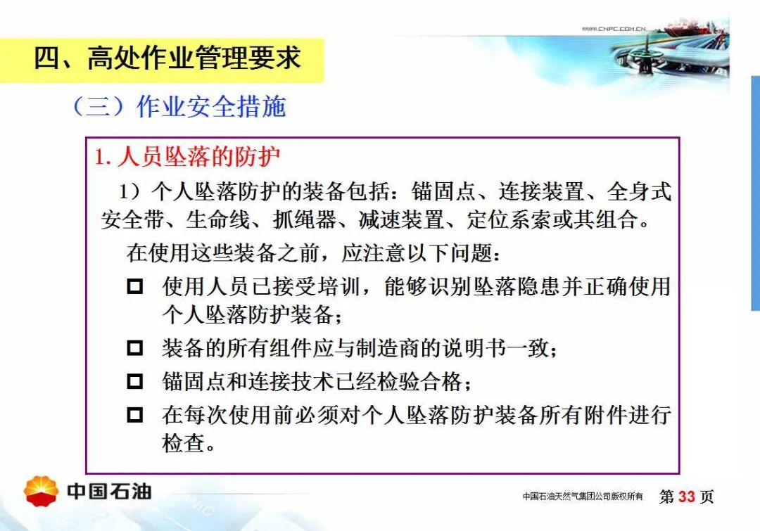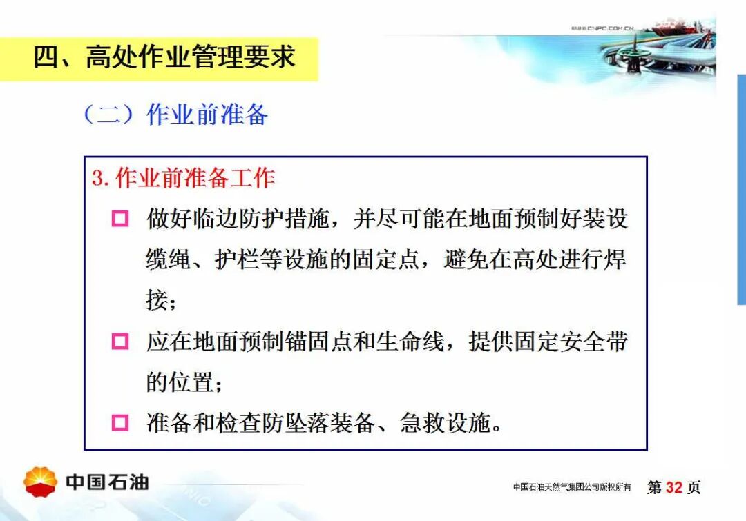 2、高处作业中的安全标志、工具、仪表、电气设施和各种设备,必须在施工前加以检查,确认其完好,方能投入使用。