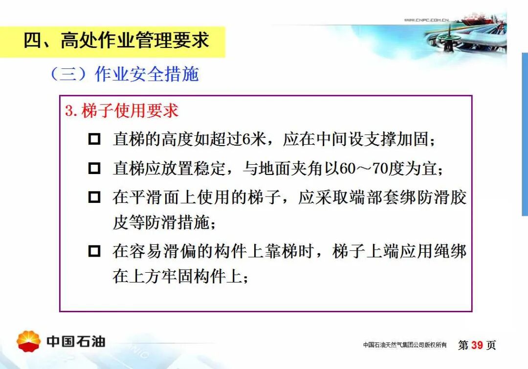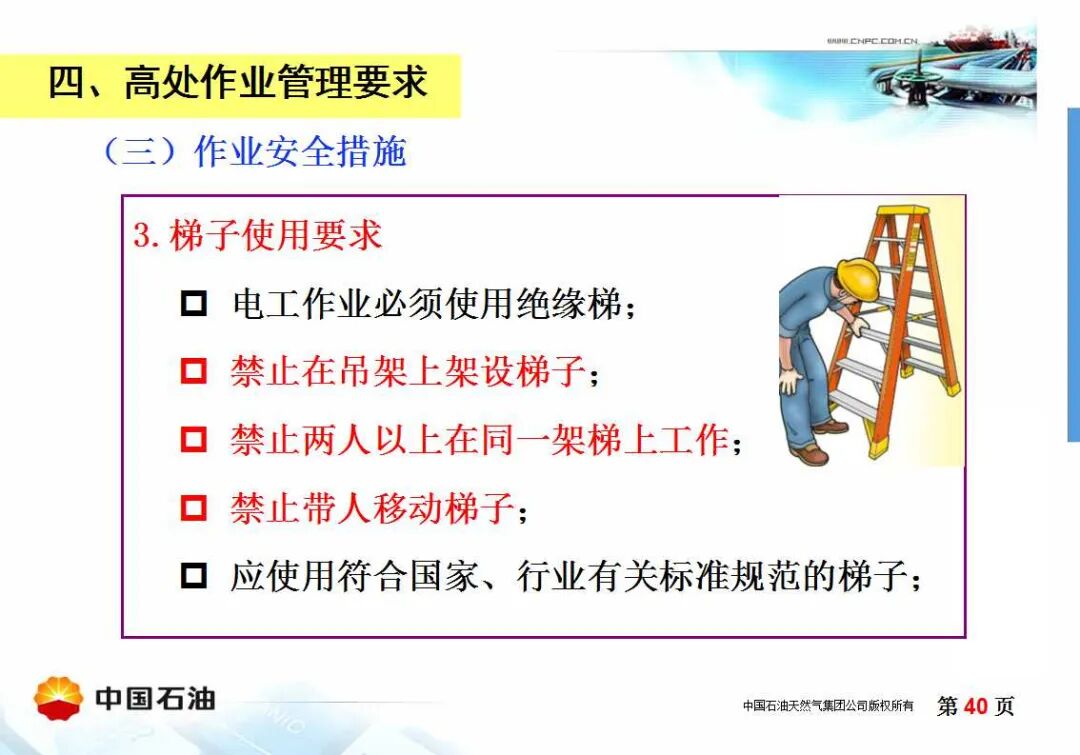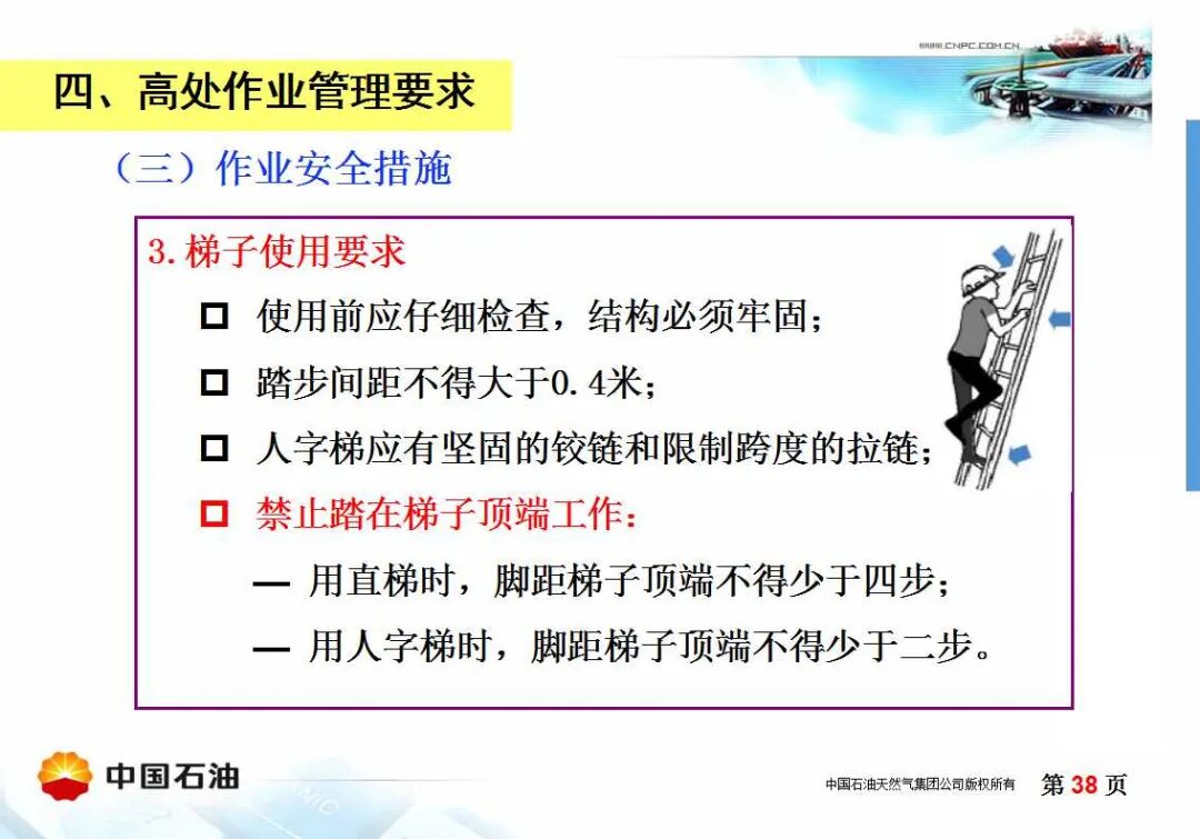 3、进行攀登作业时,作业人员要从规定的通道上下,不能在阳台之间等非规定通道进行攀登,也不得任意利用吊车车臂架等施工设备进行攀登。