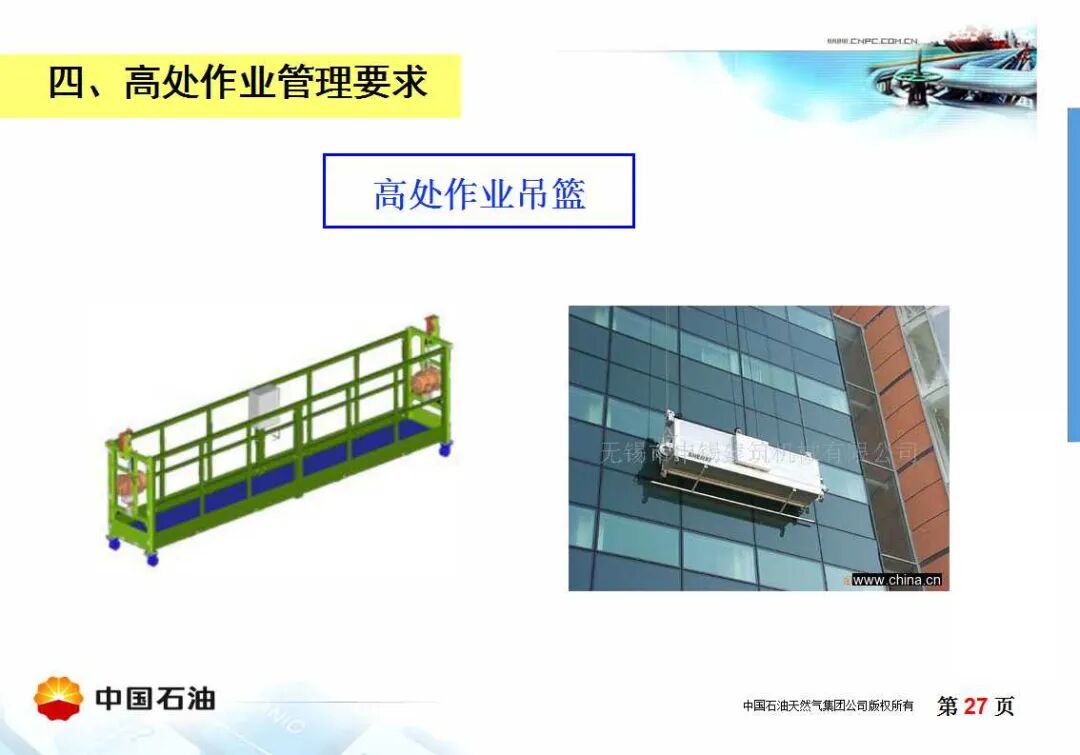 4、进行悬空作业时,要设有牢靠的作业立足处,并视具体情况设防护栏杆,搭设架手架、操作平台,使用马凳,张挂安全网或其他安全措施;作业所用索具、脚手板、吊篮、吊笼、平台等设备,均需经技术鉴定方能使用。