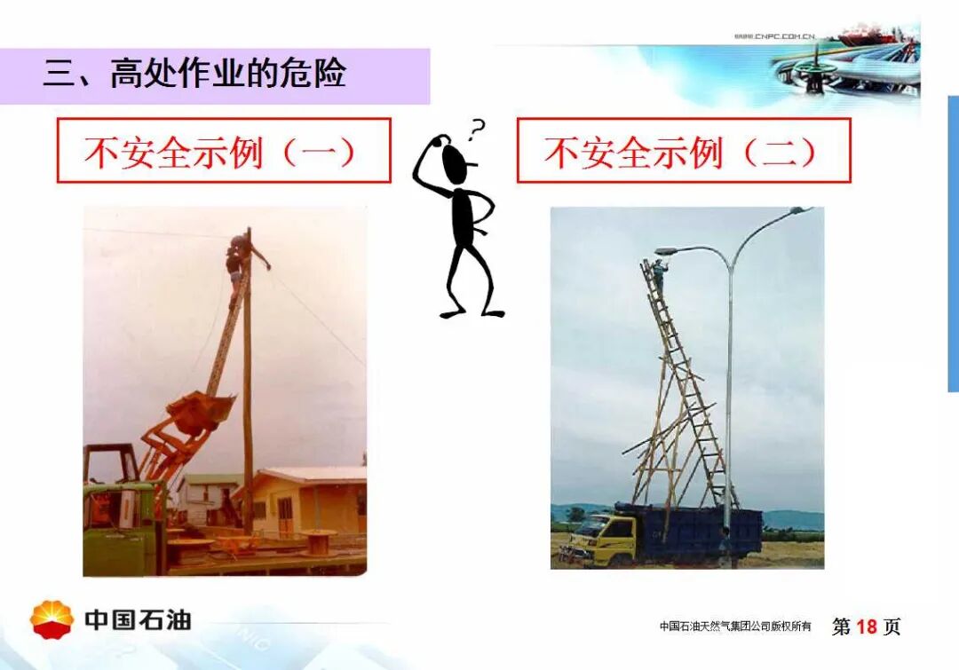 进行攀登作业时作业人员由于没有作业平台,只能攀登在可借助物的架子上作业,要借助一手攀,一只脚勾或用腰绳来保持平衡,身体重心垂线不通过脚下,作业难度大,危险性大,若有不慎就可能坠落。