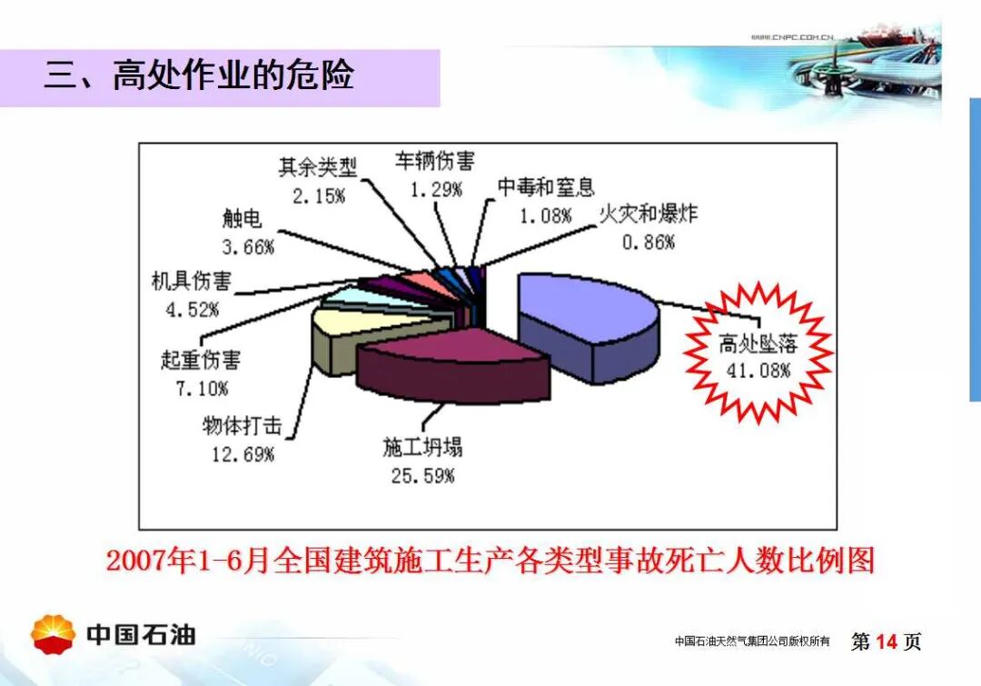 由于建筑行业的特殊性,高处作业中发生的高处坠落、物体打击事故的比例最大。许多事故案例都说明,由于正确佩戴了安全帽、安全带或按规定架设了安全网,从而避免了伤亡事故。事实证明,安全帽、安全带、安全网是减少和防止高处坠落和物体打击这类事故发生的重要措施,常称之为“三宝”。